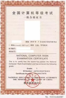 全国计算机等级考试证书 |