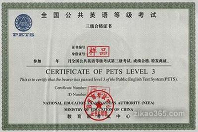全国英语等级考试证书(PETS) |