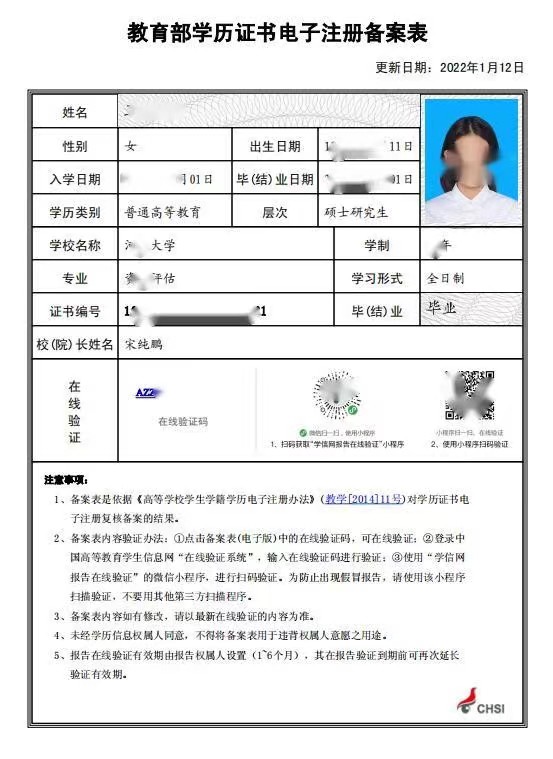 教育部学历证书电子注册备案表(或学历认证报告) |